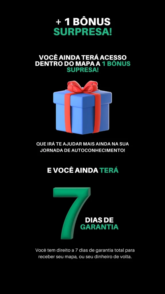 Aviso: Este produto não garante a obtenção de resultados. Cada um tem a responsabilidade de seu crescimento interior, a jornada irá auxiliar o processo e não garantir nenhuma mudança.